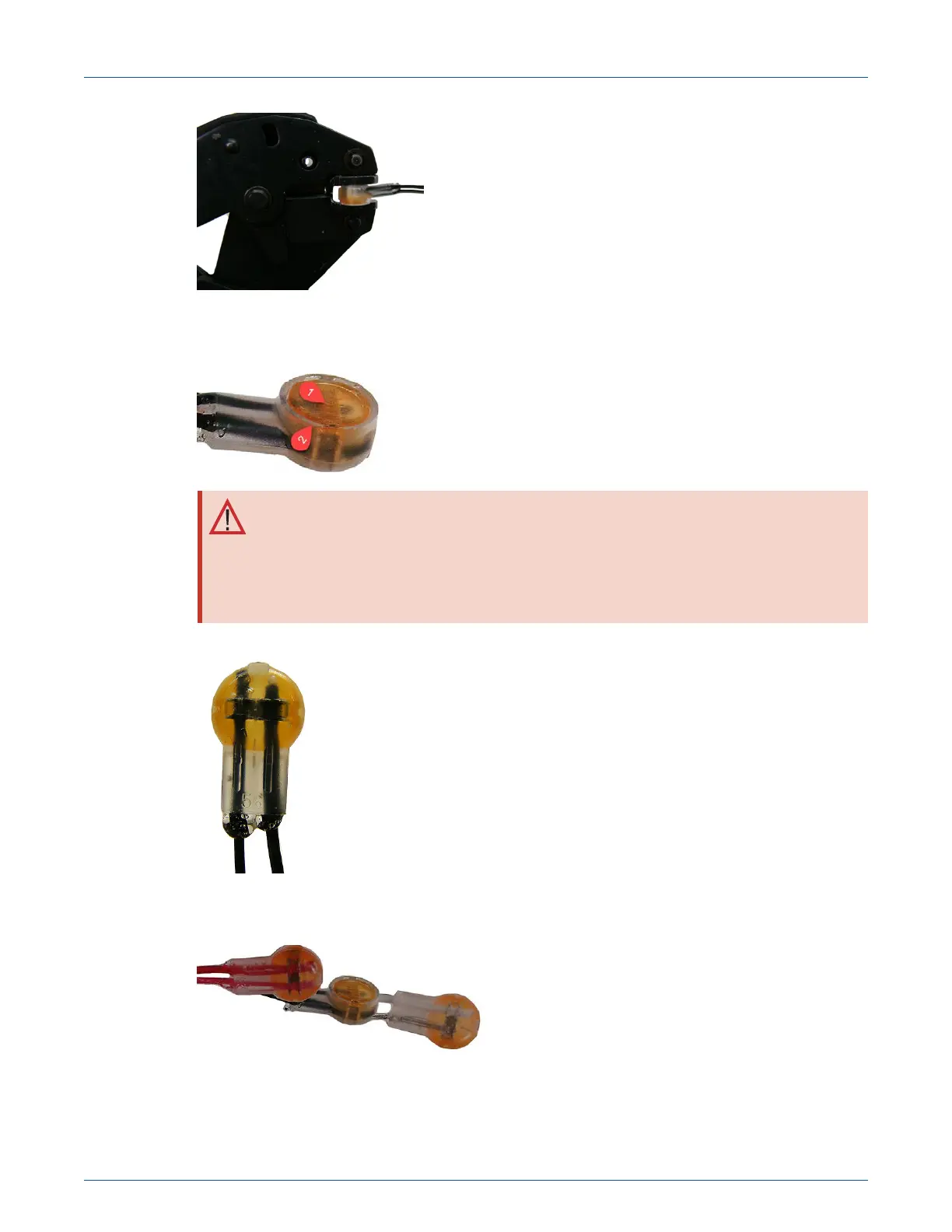 4. A connector is crimped properly when the top of the movable yellow center (1) is flush with