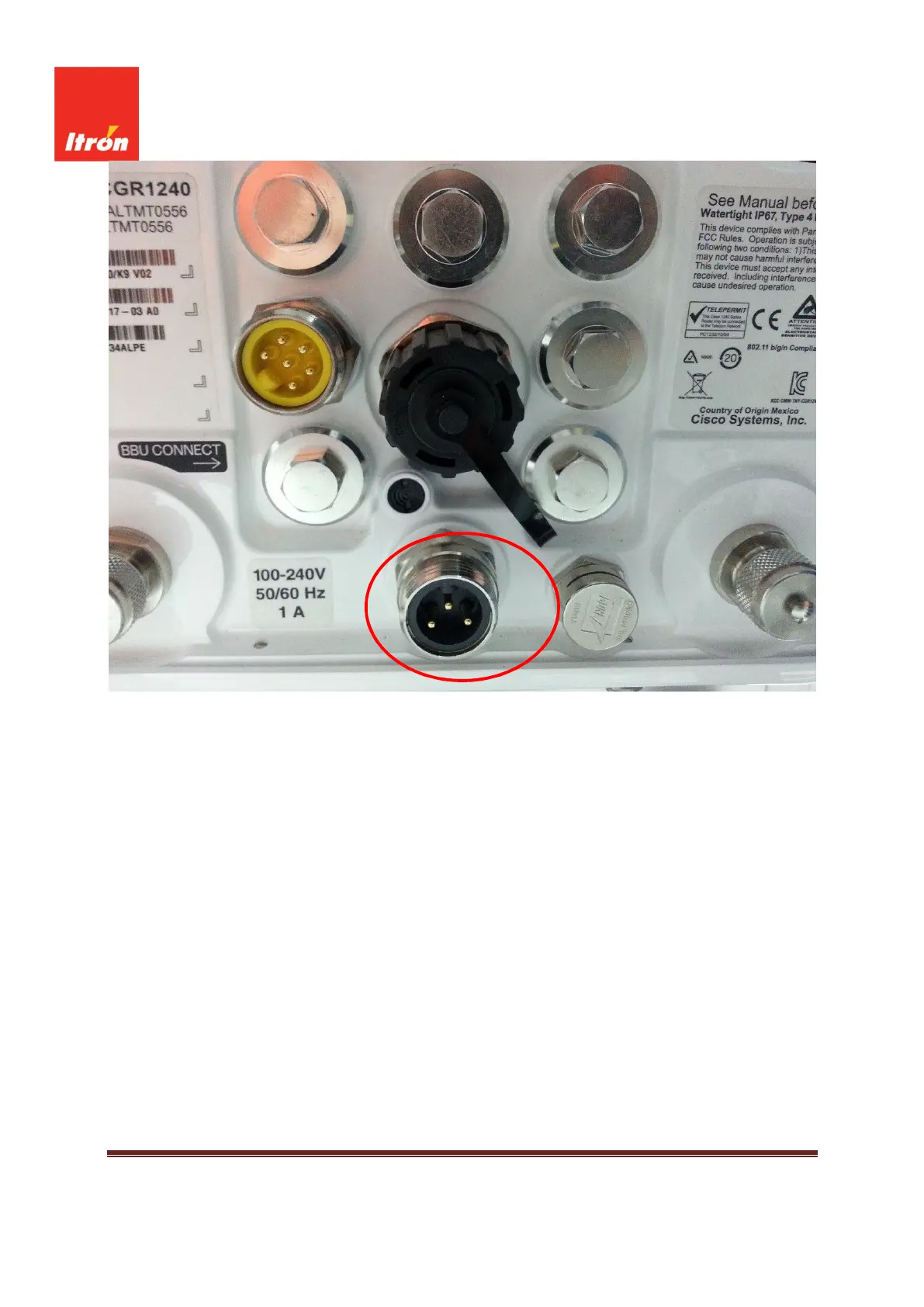 3.5 Connect the other end of the PLC Cable 010415-07 to the CGR1240 PLC Coupler bulkhead connector as