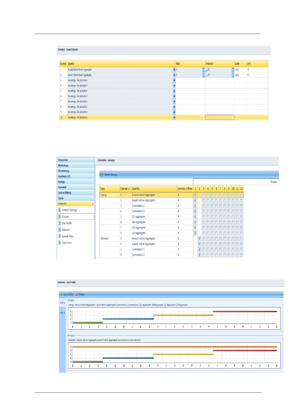 b) Configuration of Calendar Day profile 1: