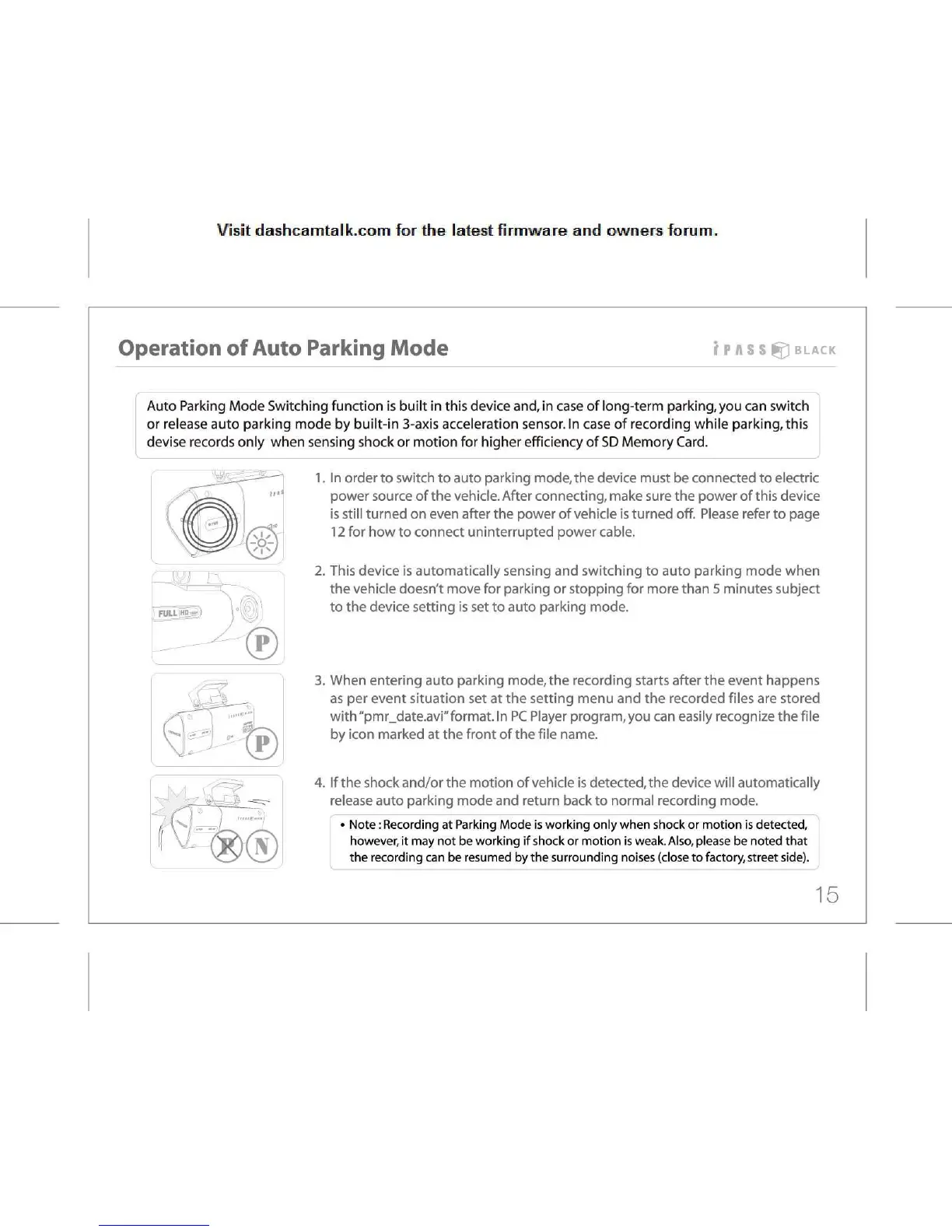 Note: Recording at Parking Mode is working only when shock or motion is detected,