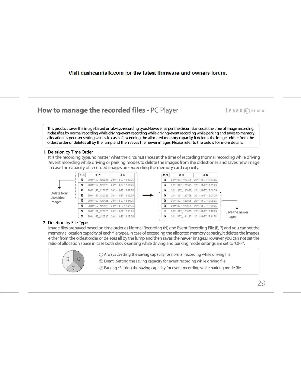 recording while driving or parking mode), to delete the images from the oldest ones and saves new image