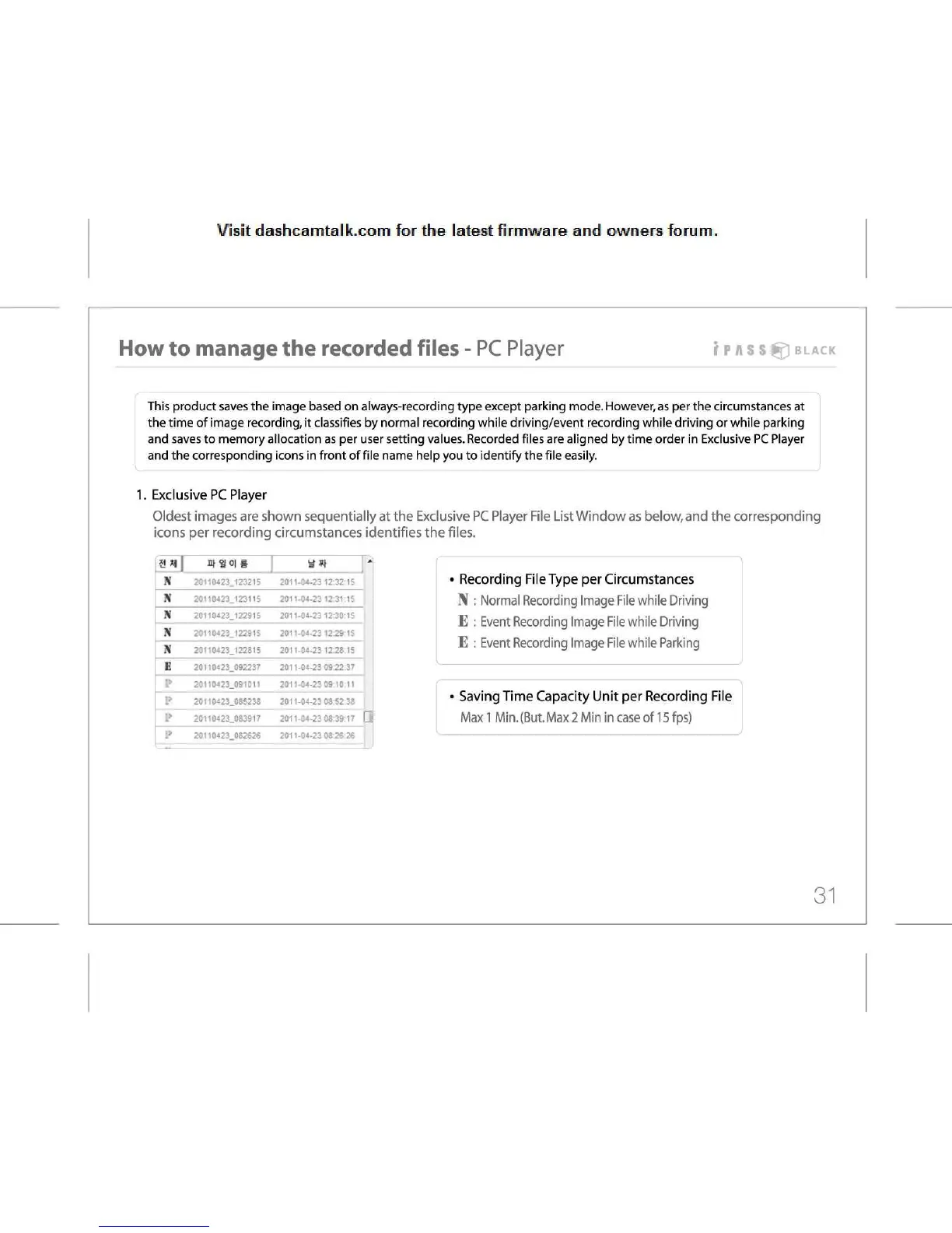 saves to memory allocation as per user setting values. Recorded files are aligned by time order in Exclusive PC Player