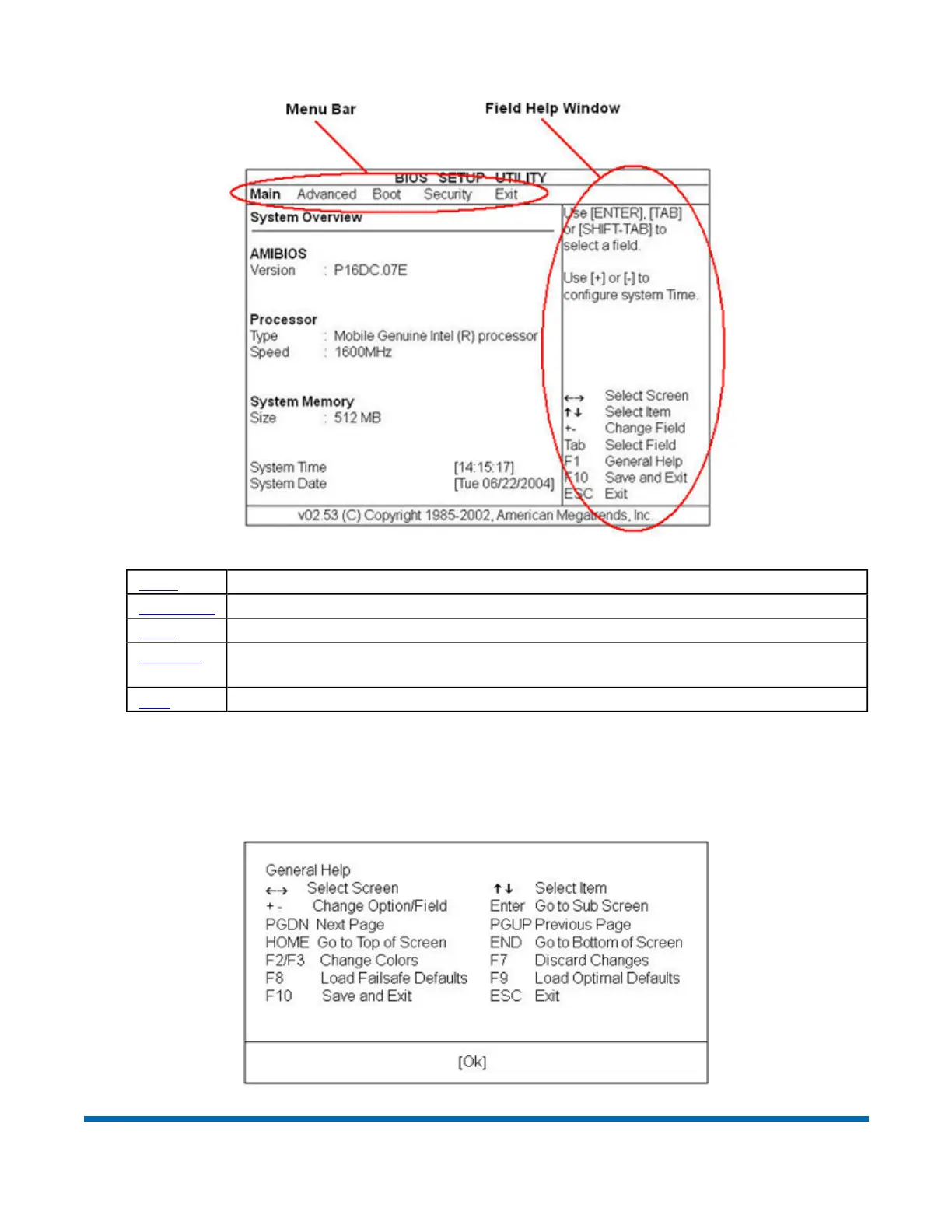 Exit Use to exit the current Setup session