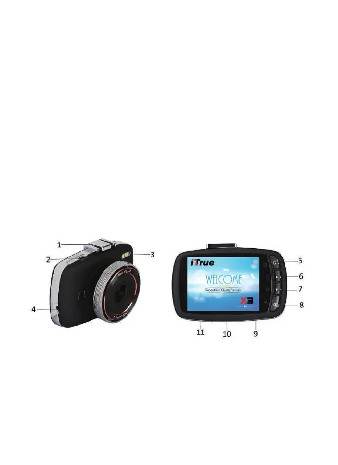 iTrue X3 - Getting Started; Overview of Your X3 HD Digital Roadcorder; Device Layout