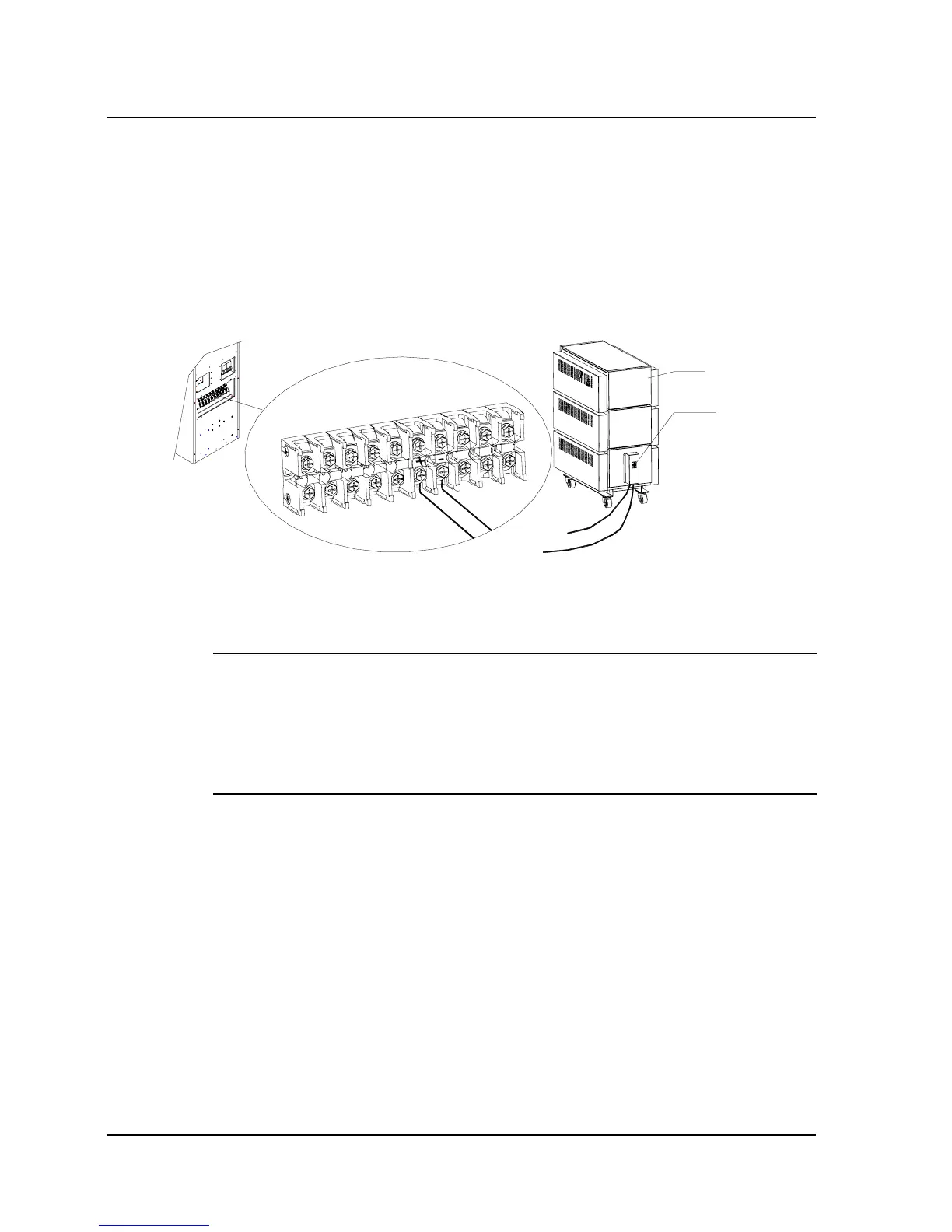 terminals “+” and “-” on the UPS input/output terminal block, and