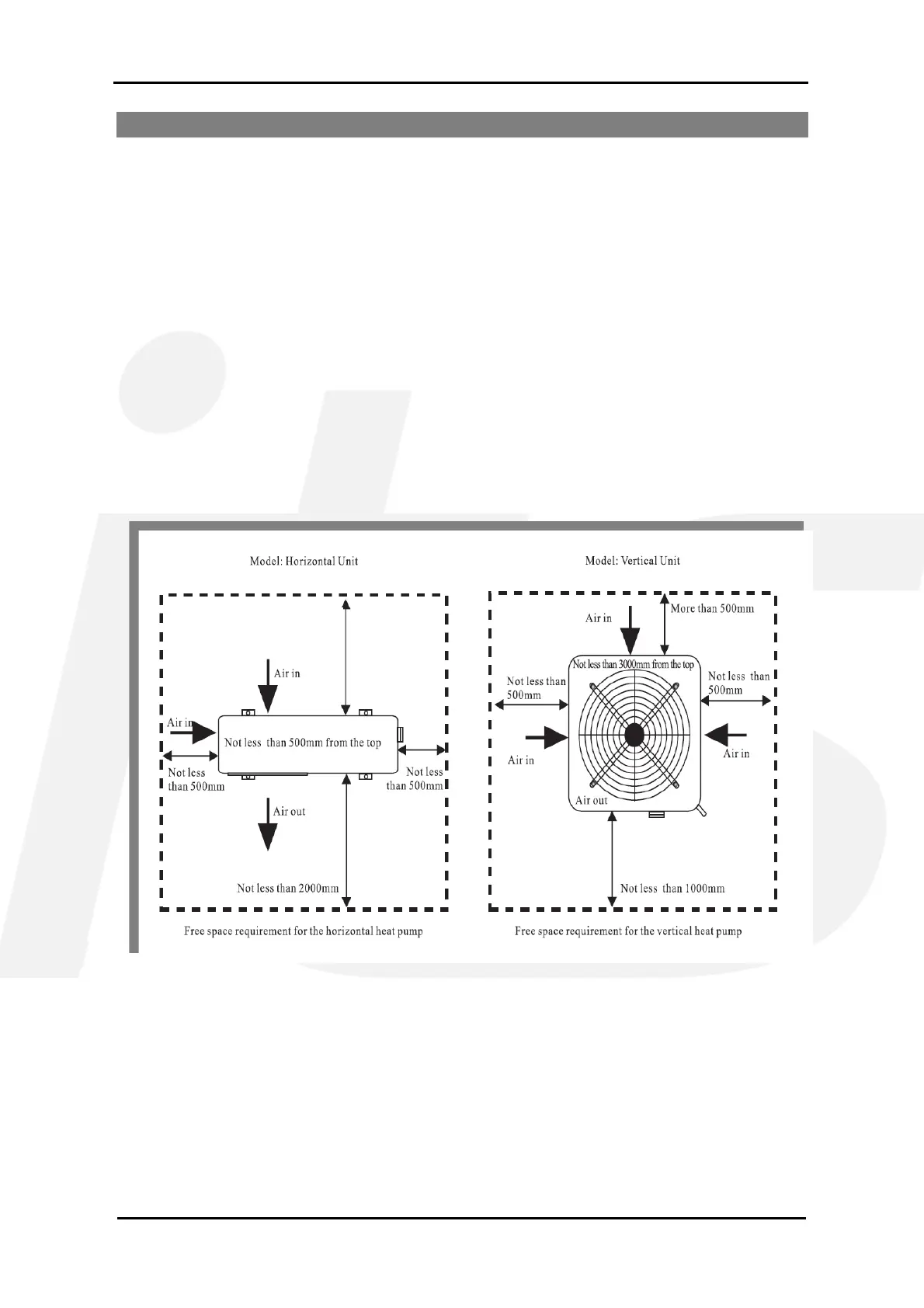 • The heat pump should be installed in places with sufficient space and good ventilation –