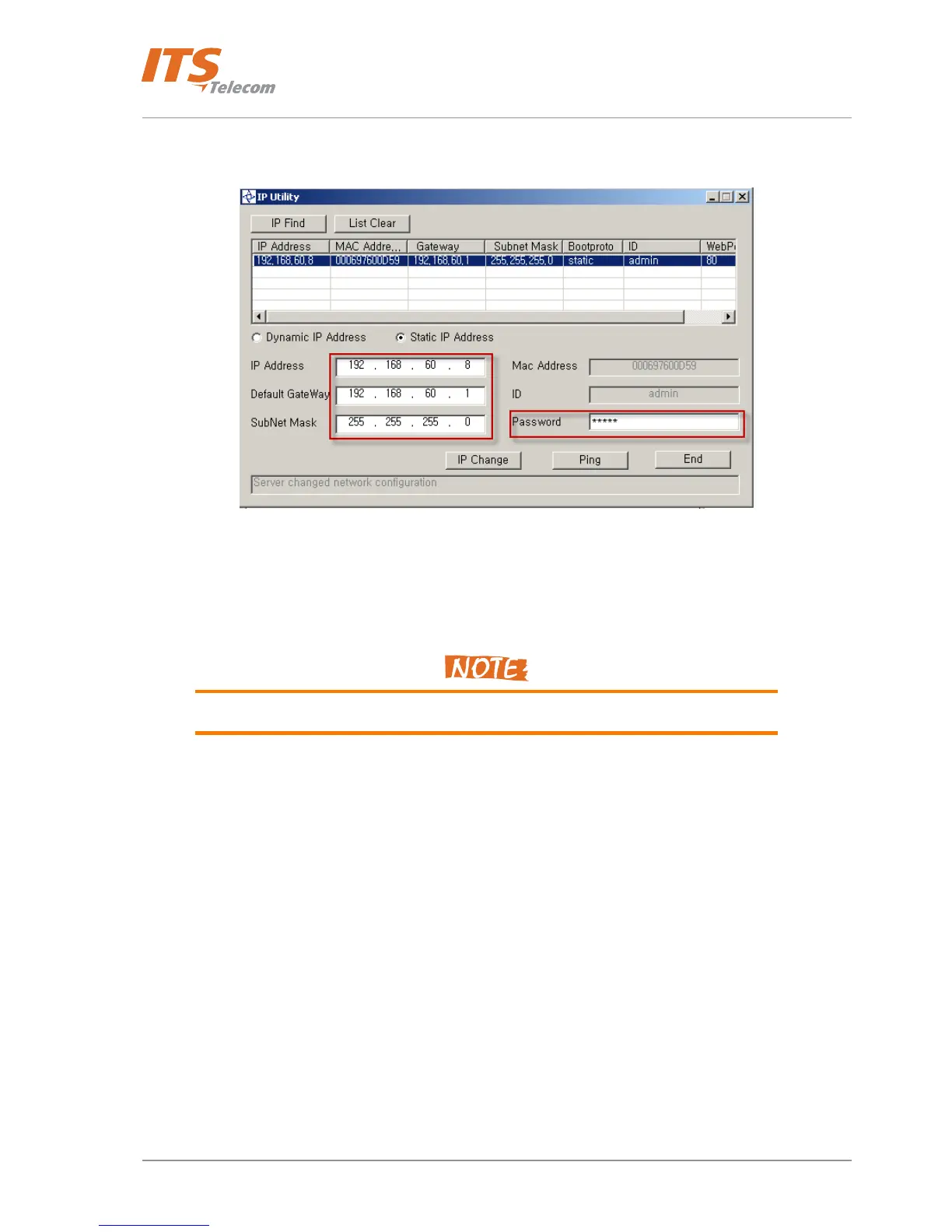 • Press ‘IP Change’ button and wait till the Network parameters will be accepted. Appropriate message