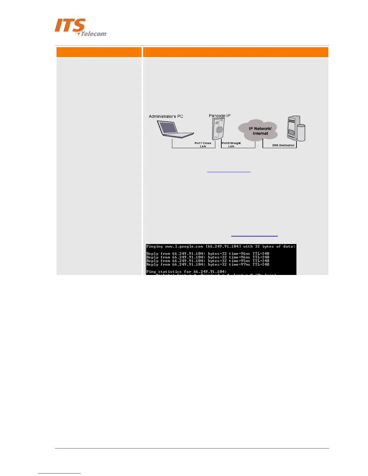 Pancode IP connected to LAN via “Port 0” Straight RJ-45
