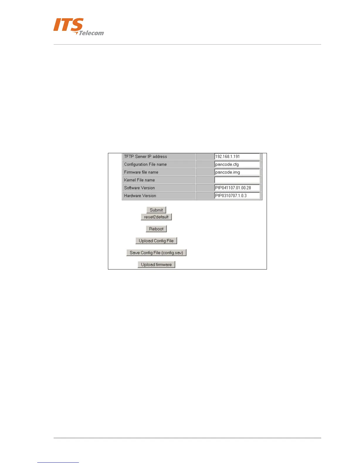 Only a firmware file provided by an authorized ITS Company representative can be used for the IP Door unit