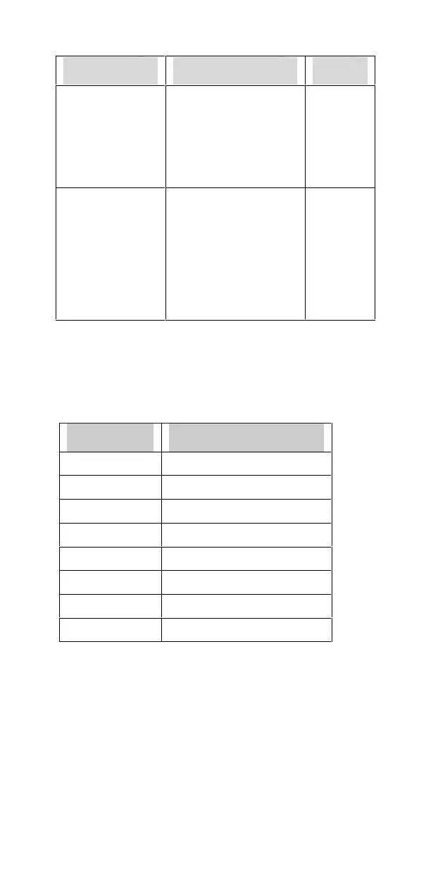 following table shows the corresponding keypad entries