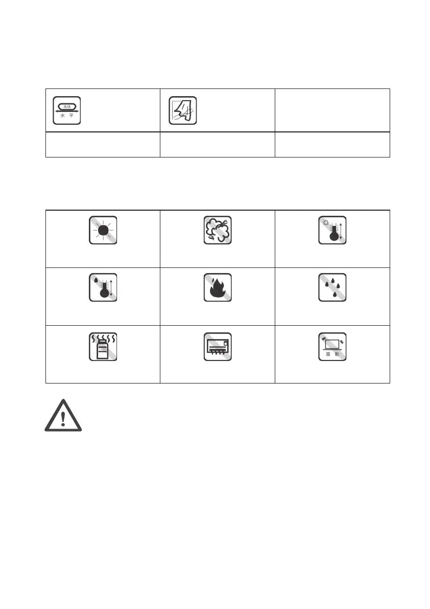 这个装置是由精密的机械和电子元件组成的。避免将机器安装在以下位置,以免造成故障。
