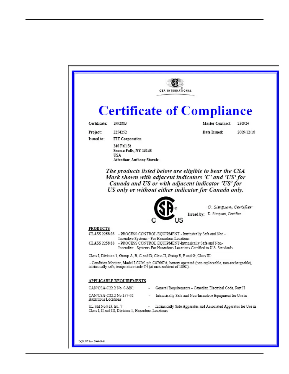 CSA Certificate