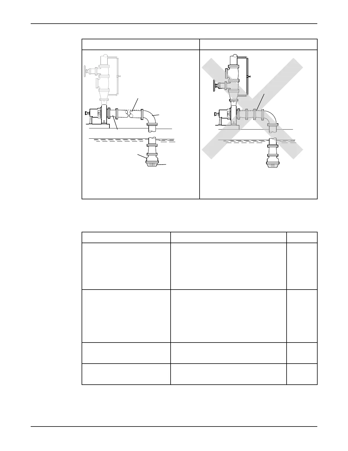 1. Suction pipe sloping upwards from liquid source