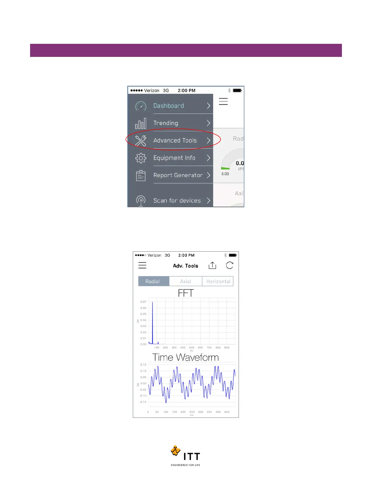 (FFT) and time waveform (TWF) data captured on the Radial sensor axis. See figure 38.