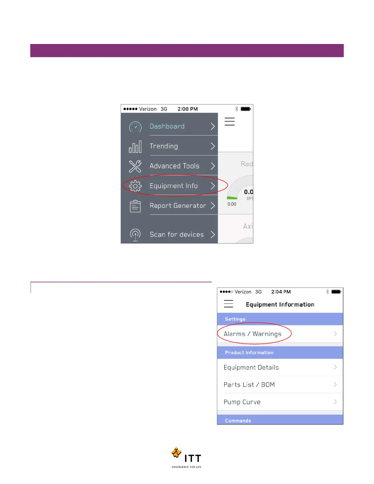 send commands to the i-ALERT2 monitor to reset the device. To access the Equipment information page, tap the icon in the