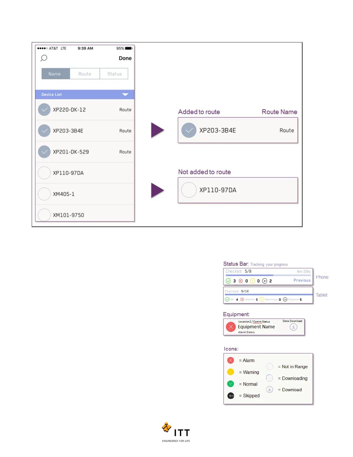 4. Listing of the “Devices on Route” that are not yet checked (meaning,