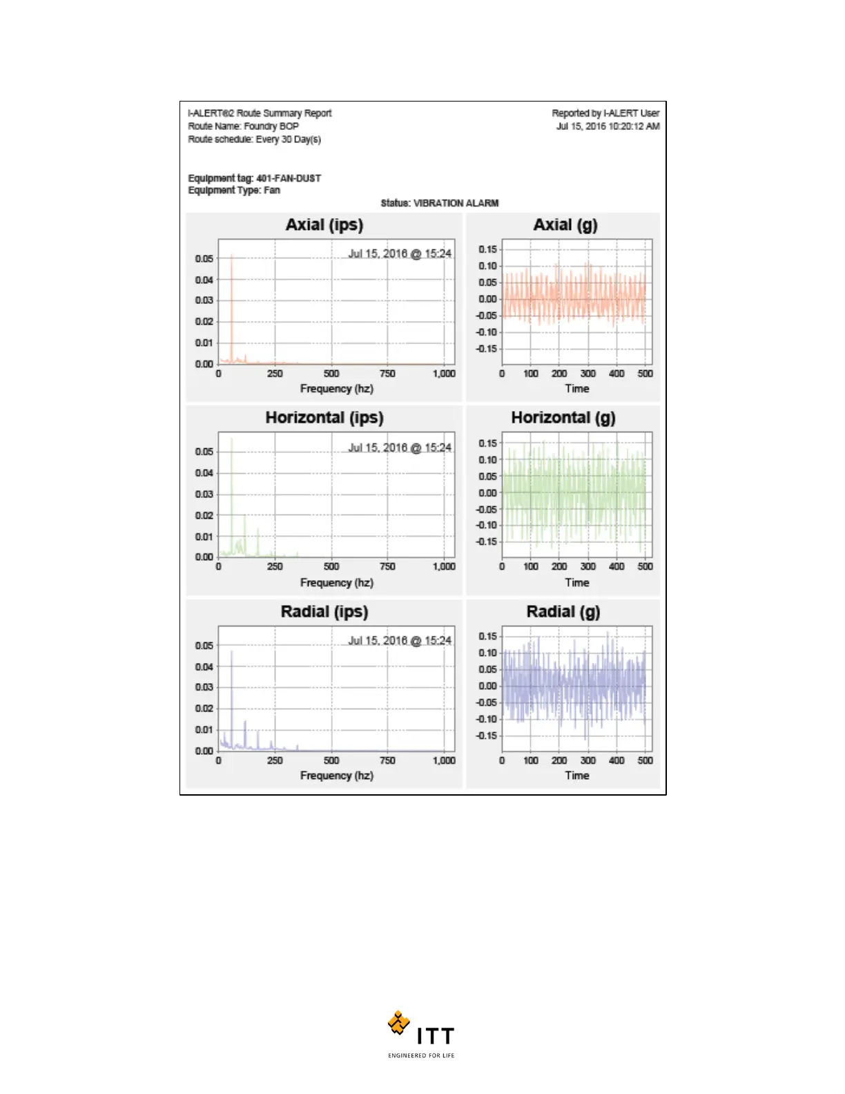 At the top of each page a summary of equipment details is found followed by either trends or FFT’s for that device. The