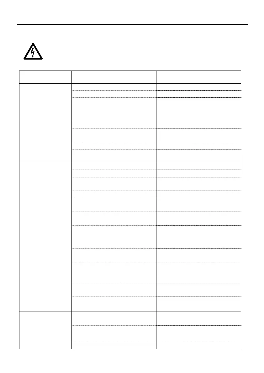 13.3 Electric panel troubleshooting table