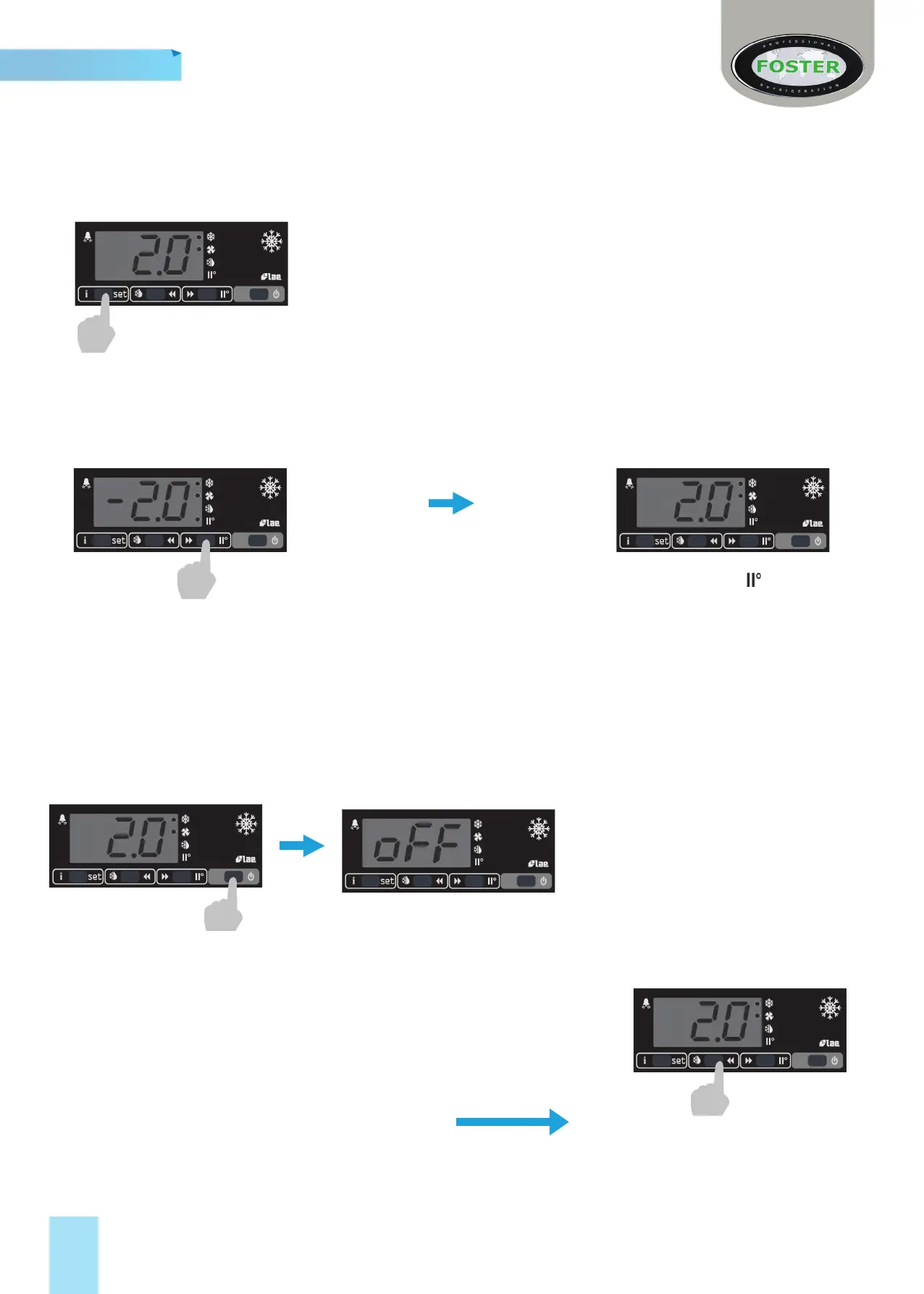 Bij het veranderen van de ladetemperatuur moet u eerst alle producten verwijderen. Laat de toonbank ten minste