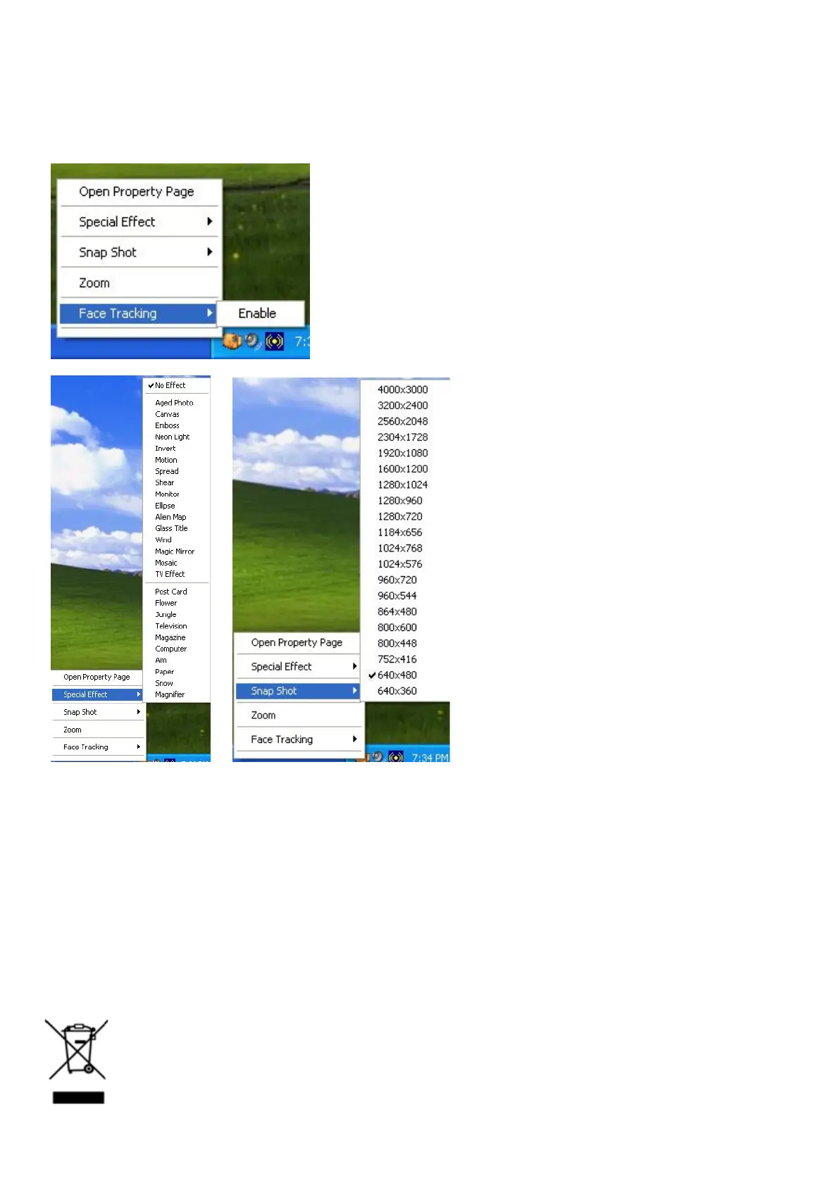 Cliquez sur l’icône située en bas à droite de l’écran pour régler les effets spéciaux, les instantanés, le zoom