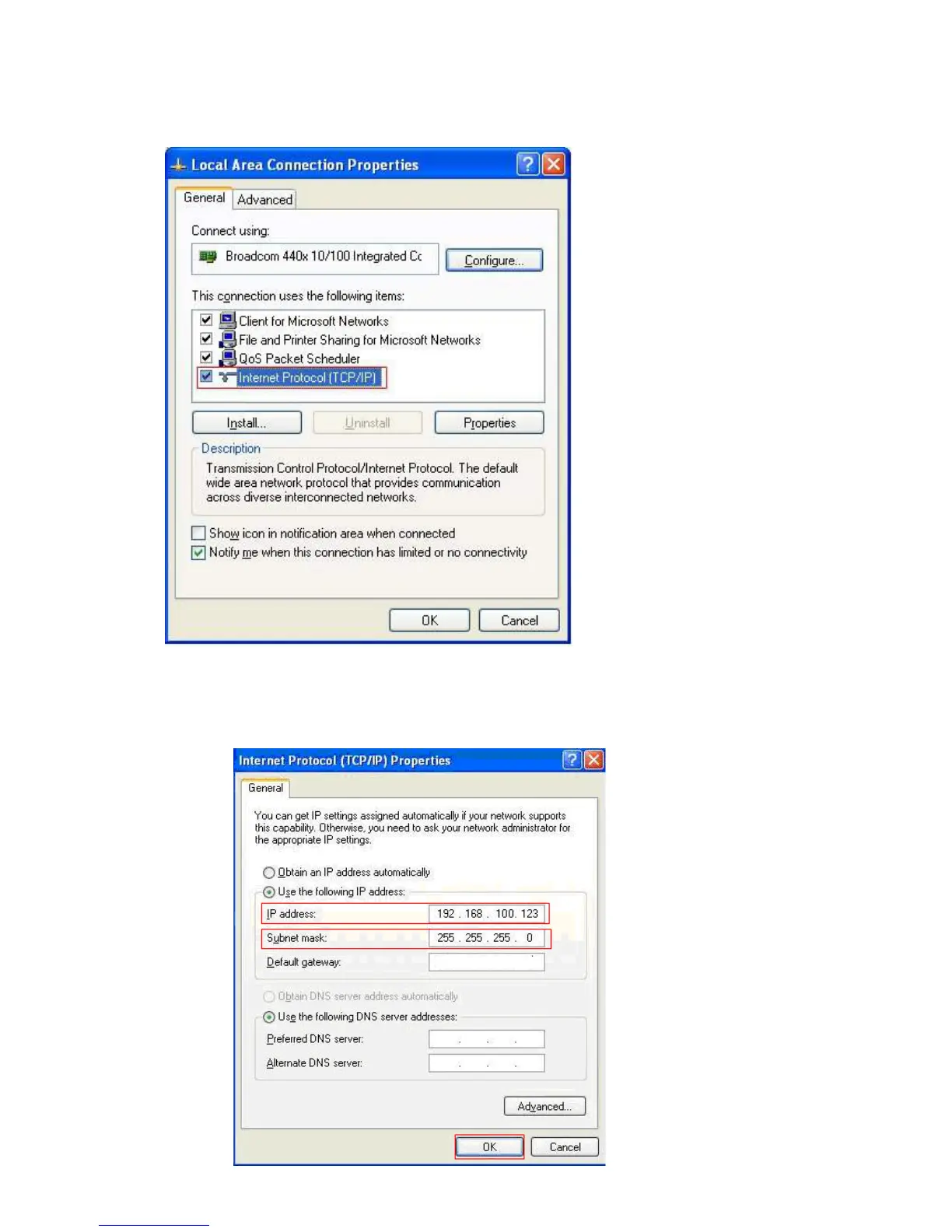 Internet Protocol (TCP/IP) and then click the Propertiesbutton.
