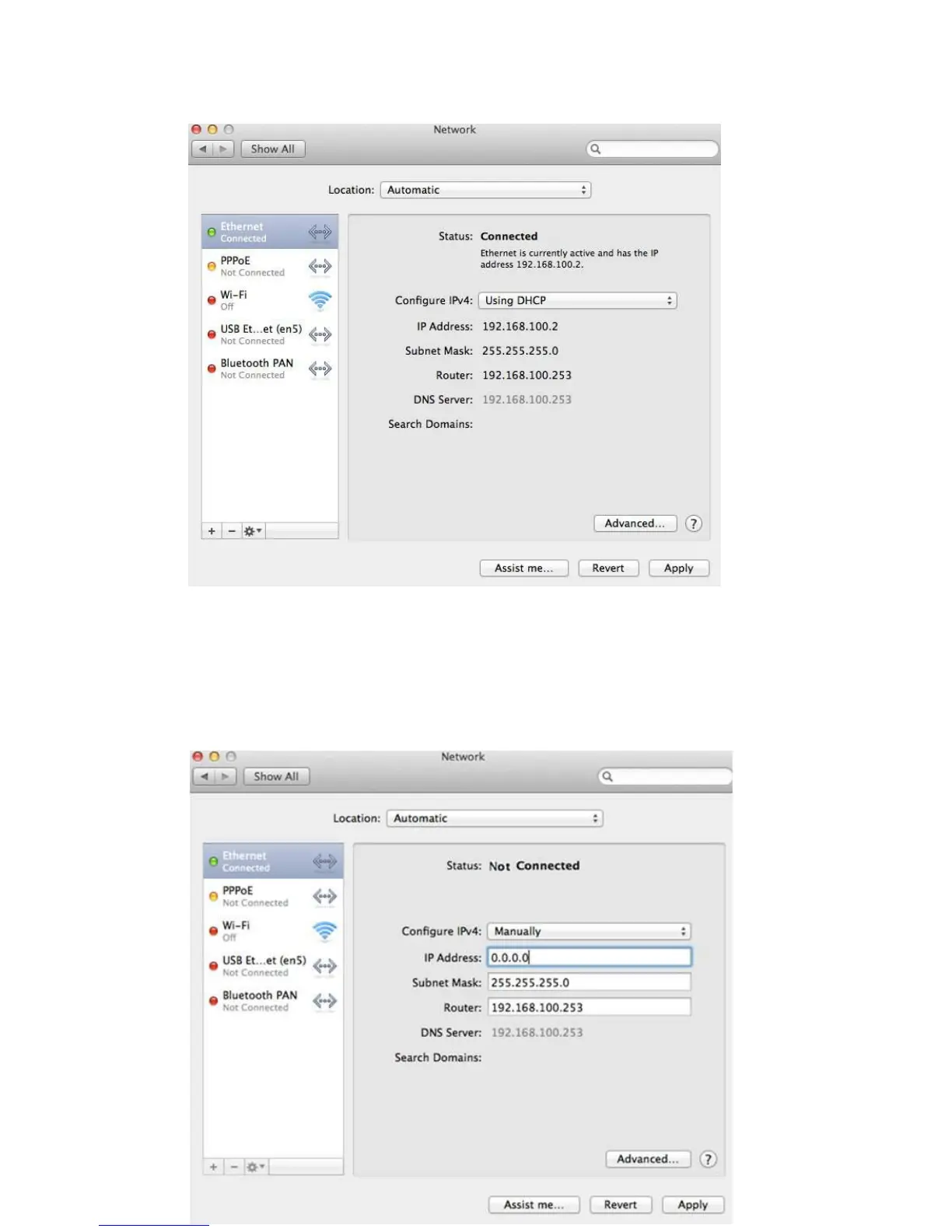 By default the automatic wired connection is Ethernet DHCP. If DHCP is enabled you can