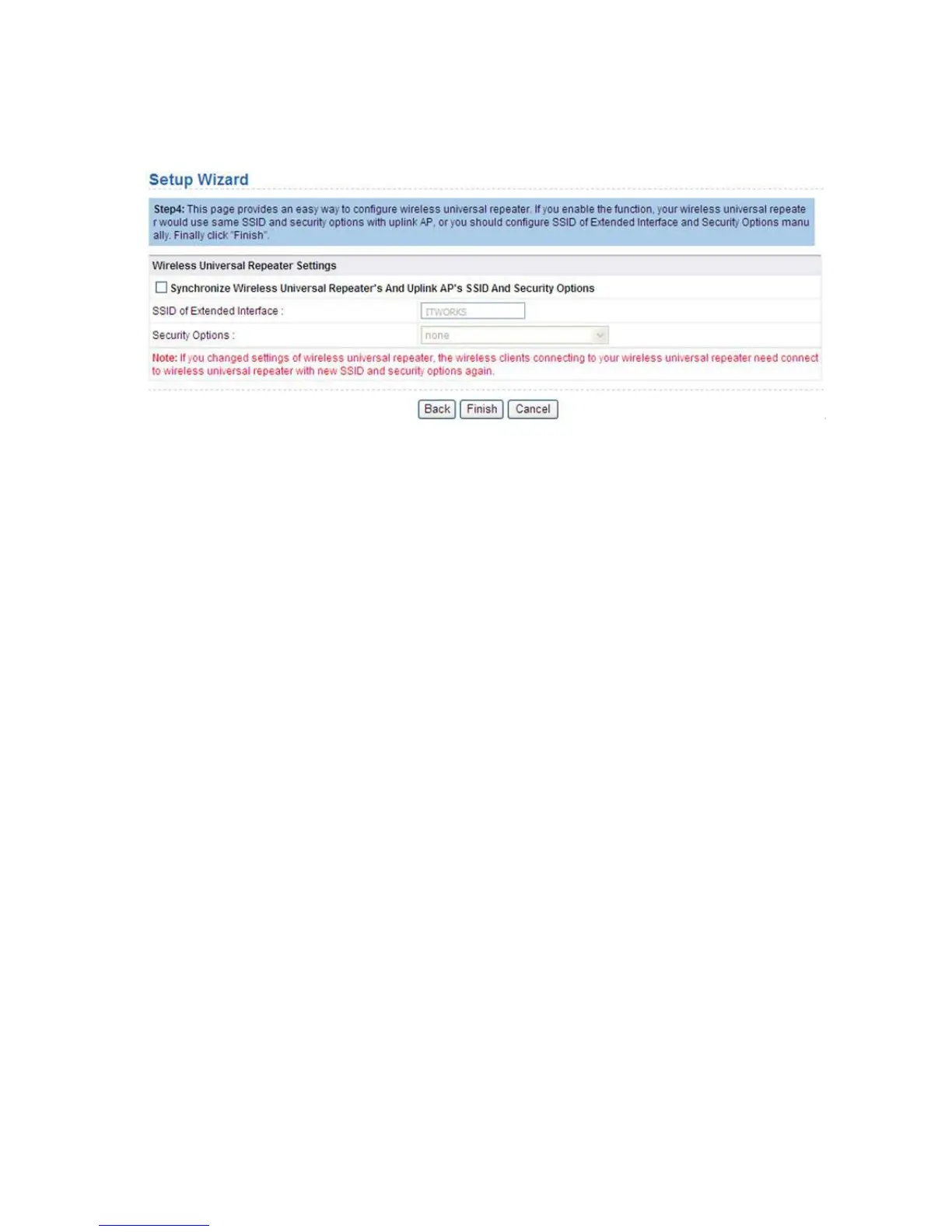 6. Deselect Synchronize Wireless Universal Repeater's and Uplink repeater's SSID and