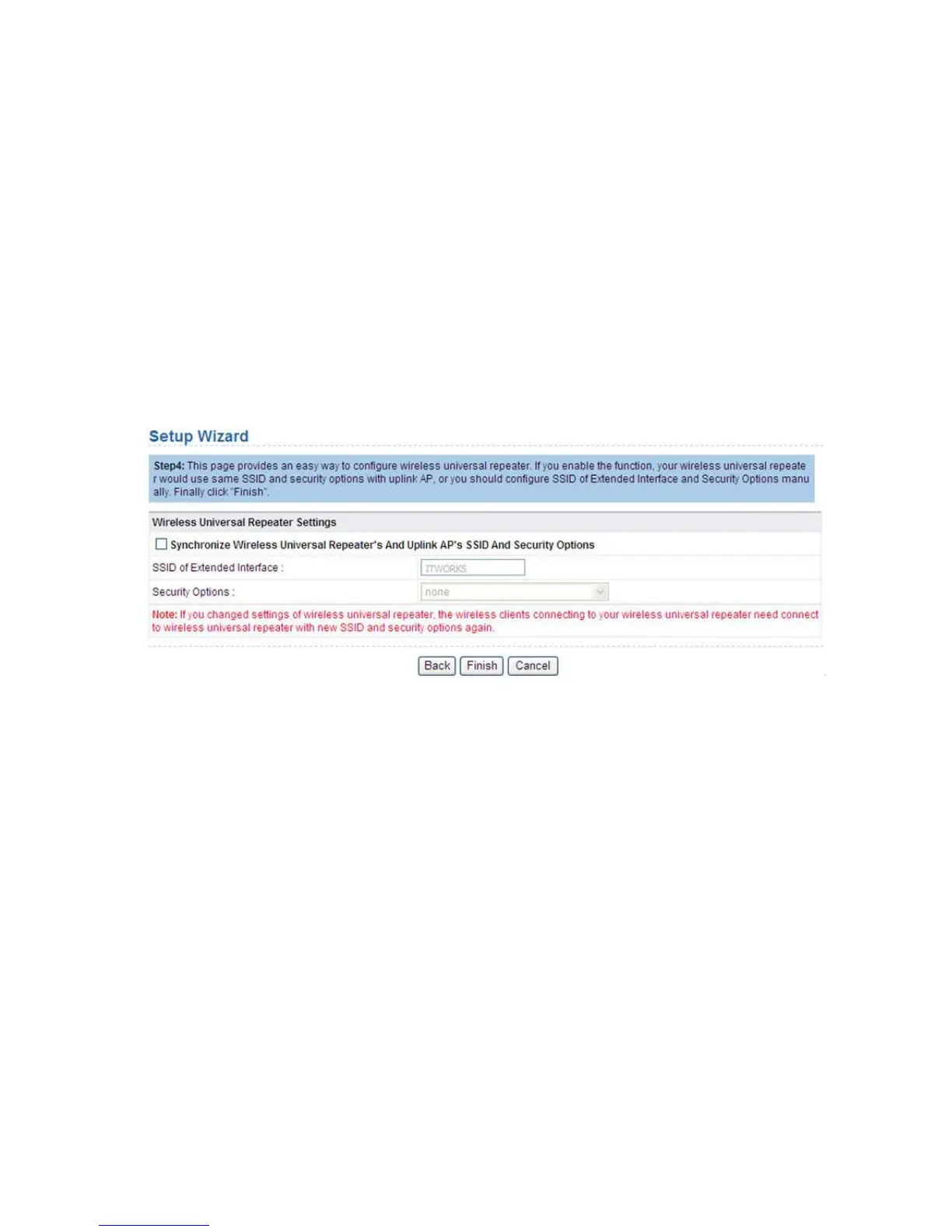 6. Désélectionnez Synchroniser le SSID et les options de sécurité du répéteur sans fil