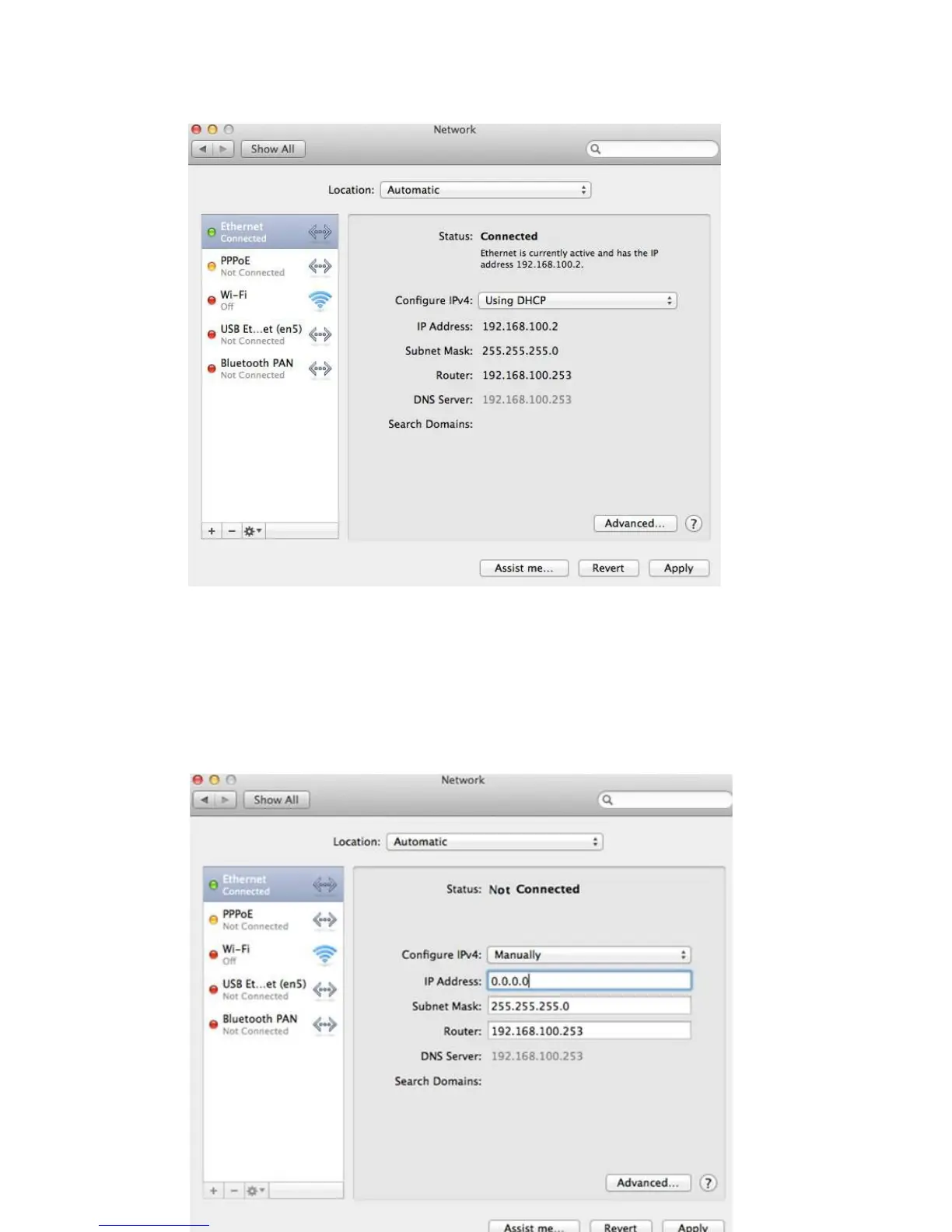 Ethernet DHCP is de standard automatisch bekabelde verbinding. Als DHCP is