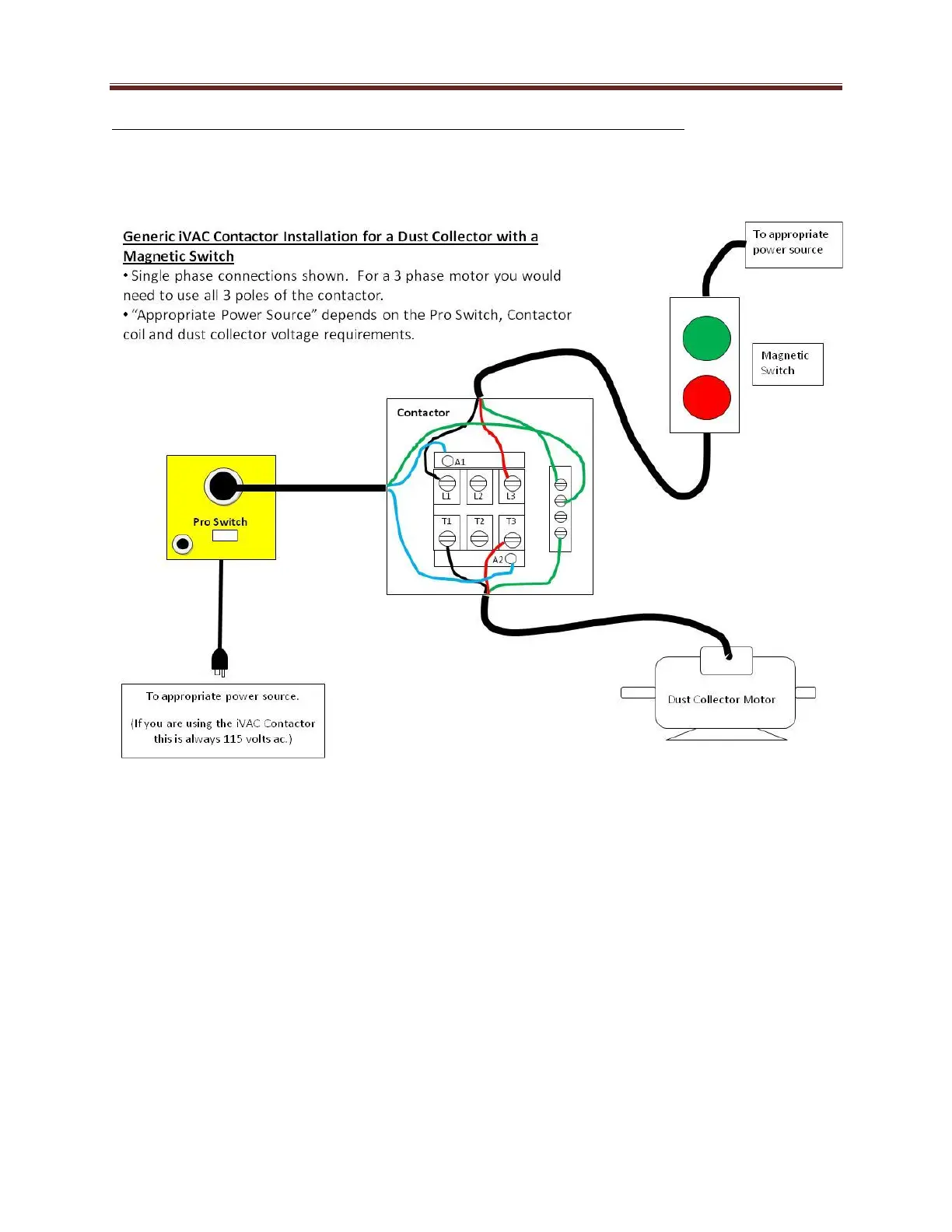 Refer to the drawing below for installing a contactor with a dust collector that does have a magnetic