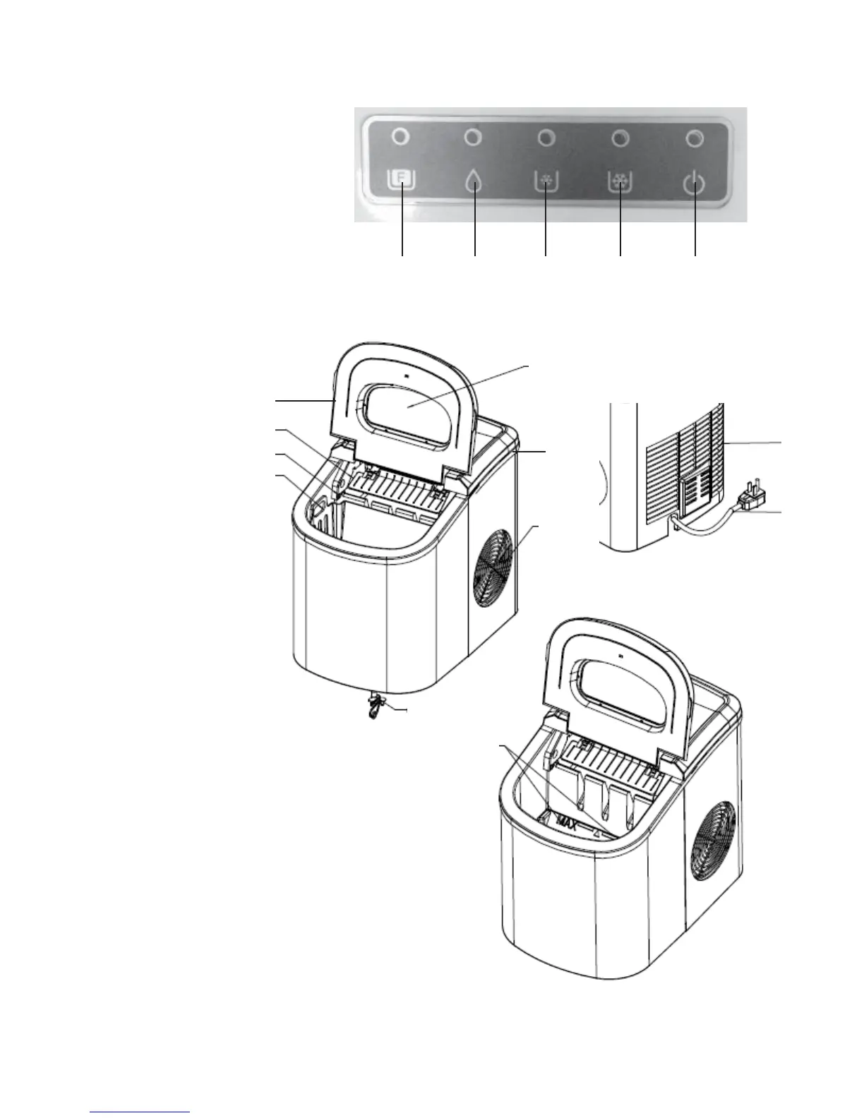 Ivation Portable Icemaker Silver - Parts and Controls Identification; Control Panel Overview; Icemaker Components Diagram