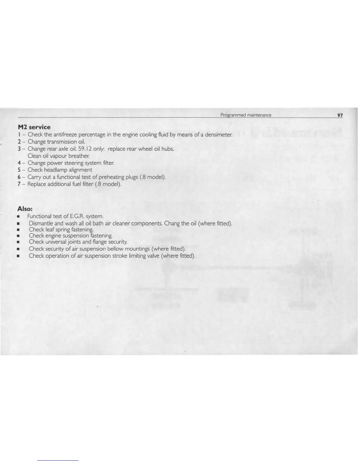 air suspension bellow mountings (where fitted).