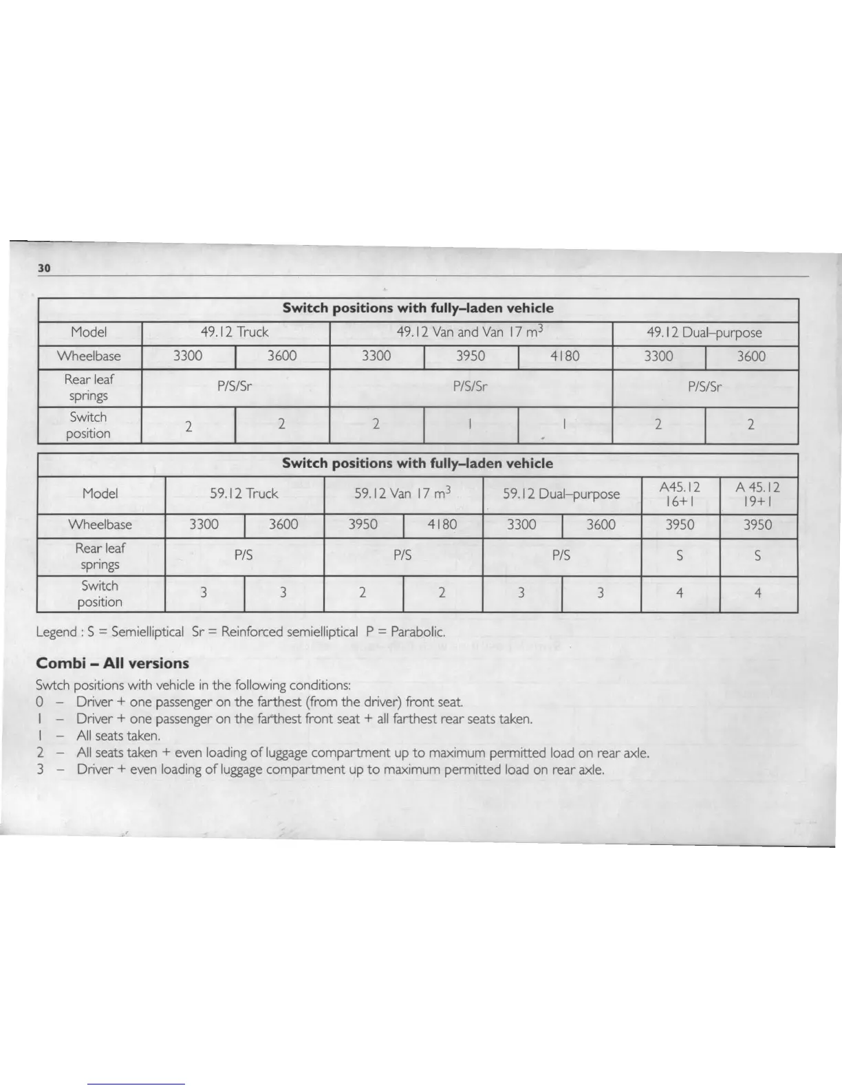 Switch positions with fully-laden vehicle