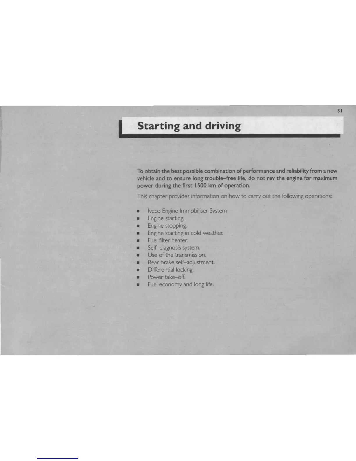 Iveco daily - Starting and Driving; Iveco Engine Immobiliser System; Engine Starting Procedures; Engine Stopping Procedures