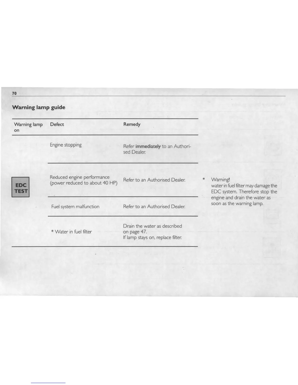 Iveco daily - Engine Stopping and Performance Warnings; Fuel System Malfunction and Filter Warnings