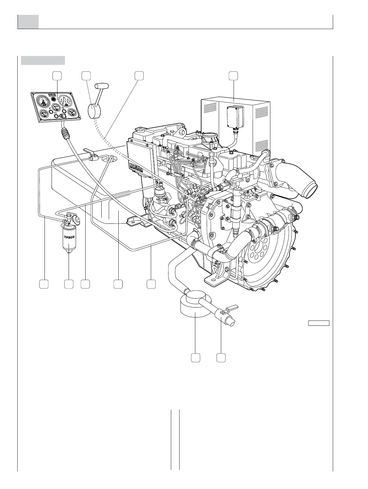 units - 5. Filtered sea water intake - 6. Decanter filter - 7. Fuel return pipe to tank - 8. Tank -
