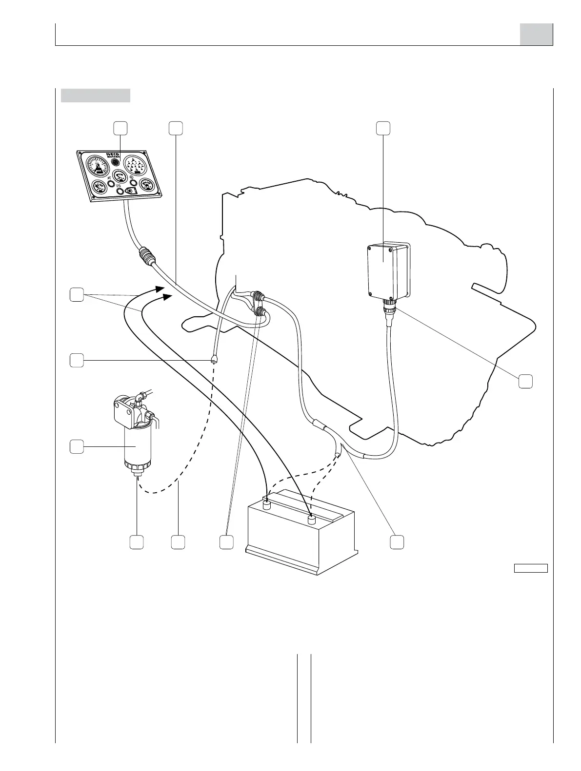 harness - 6. JA and JB connectors - 7. Wiring harness to be manufactured by the yard - 8. Sensor for the presence of water in the