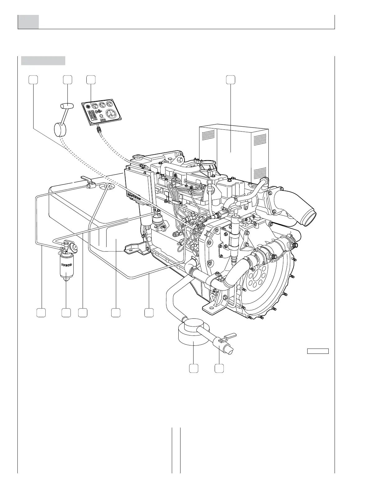 5. Filtered sea water intake - 6. Decanter filter - 7. Fuel return pipe to tank - 8. Tank -