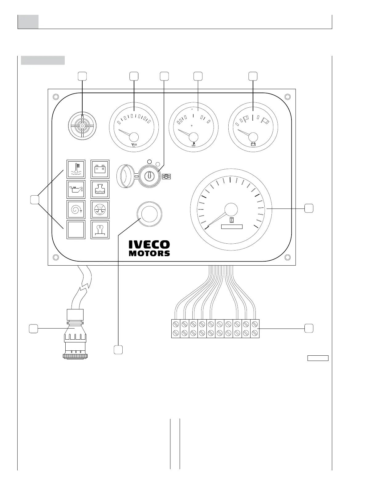 temperature gauge (TA) - 6. Voltmeter (V) - 7. Revolution counter and hour counter (CG) - 8. Secondary board connecting