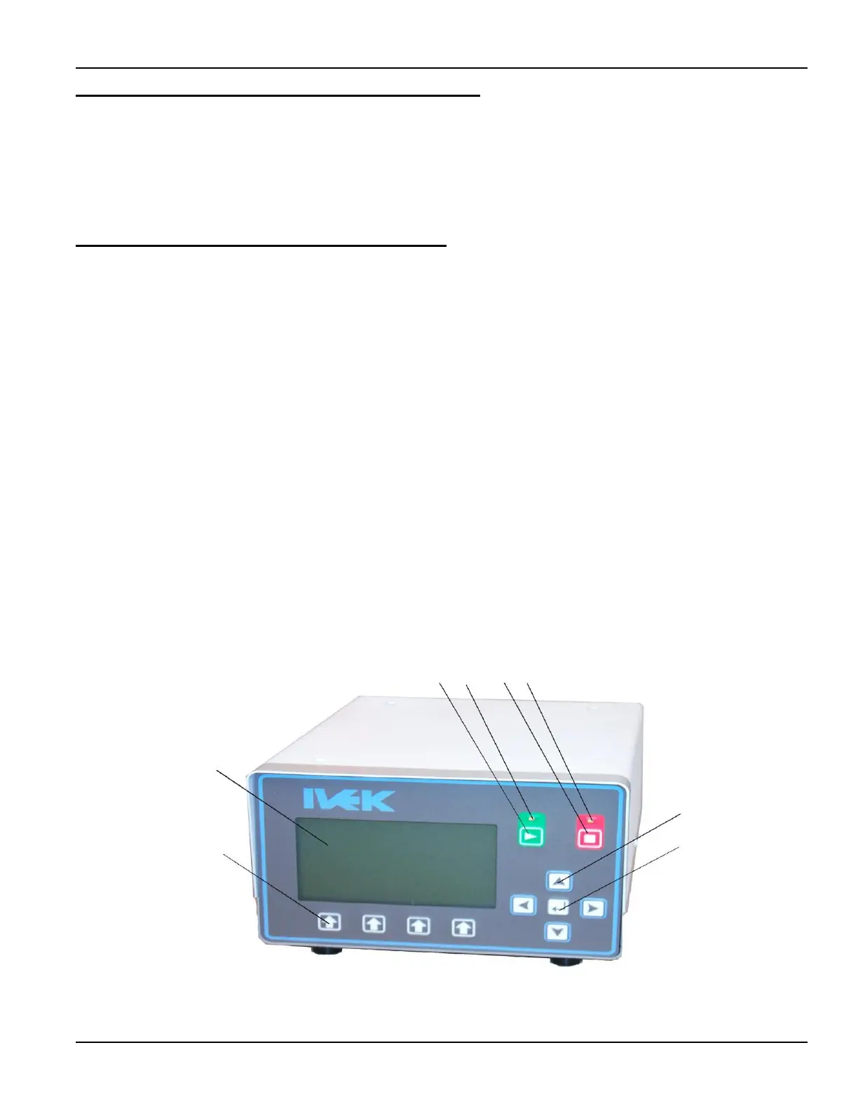 The front panel contains the operator interface for controlling the system. The following items are located on the front
