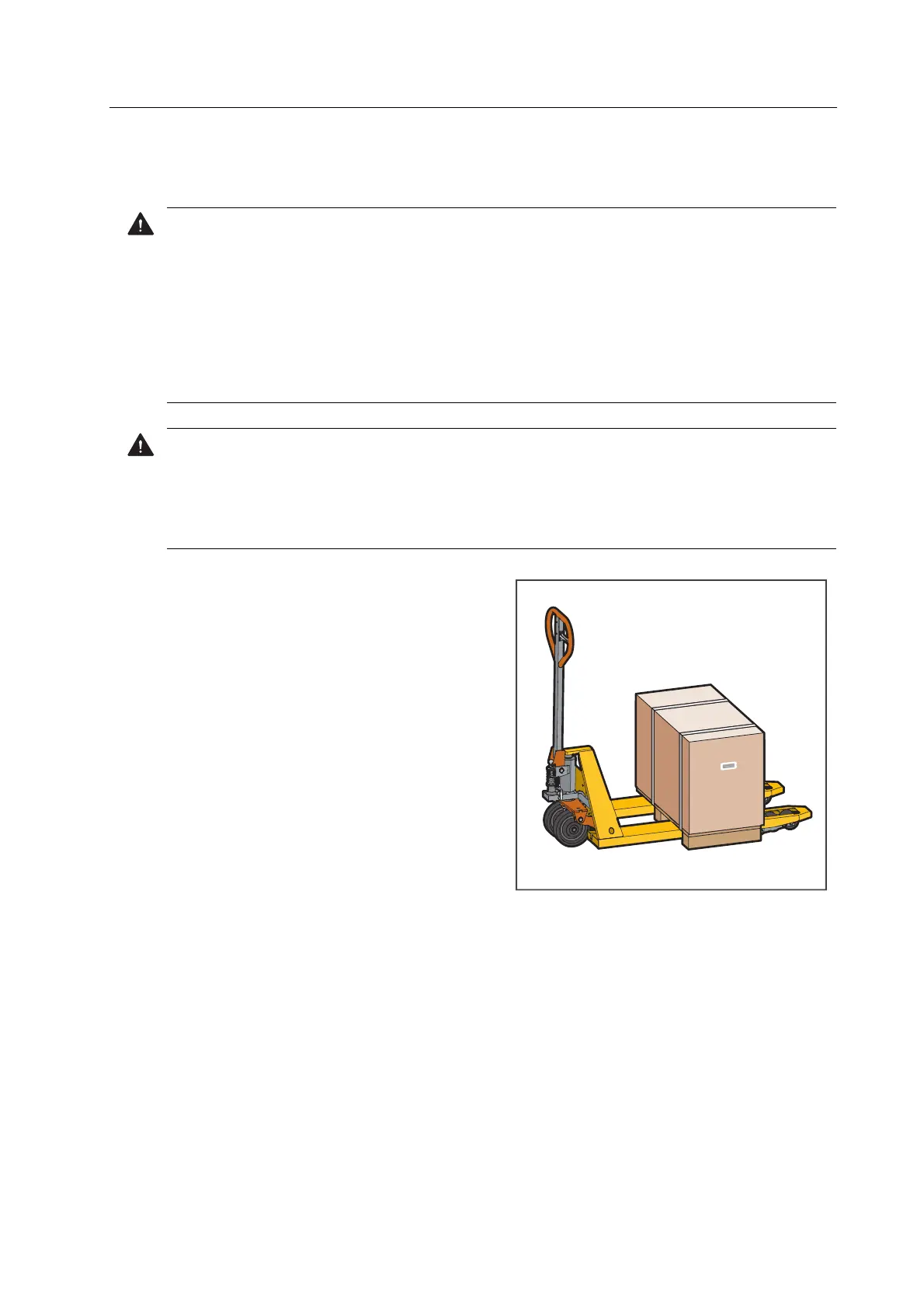 Only use suitable means of transportation (e.g. fork lift trucks, capacity least 50 kg).
