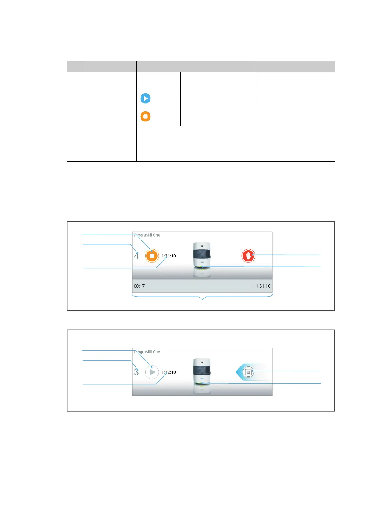 depending on the status of the milling jobs (tasks to be performed, start, stop, pause).