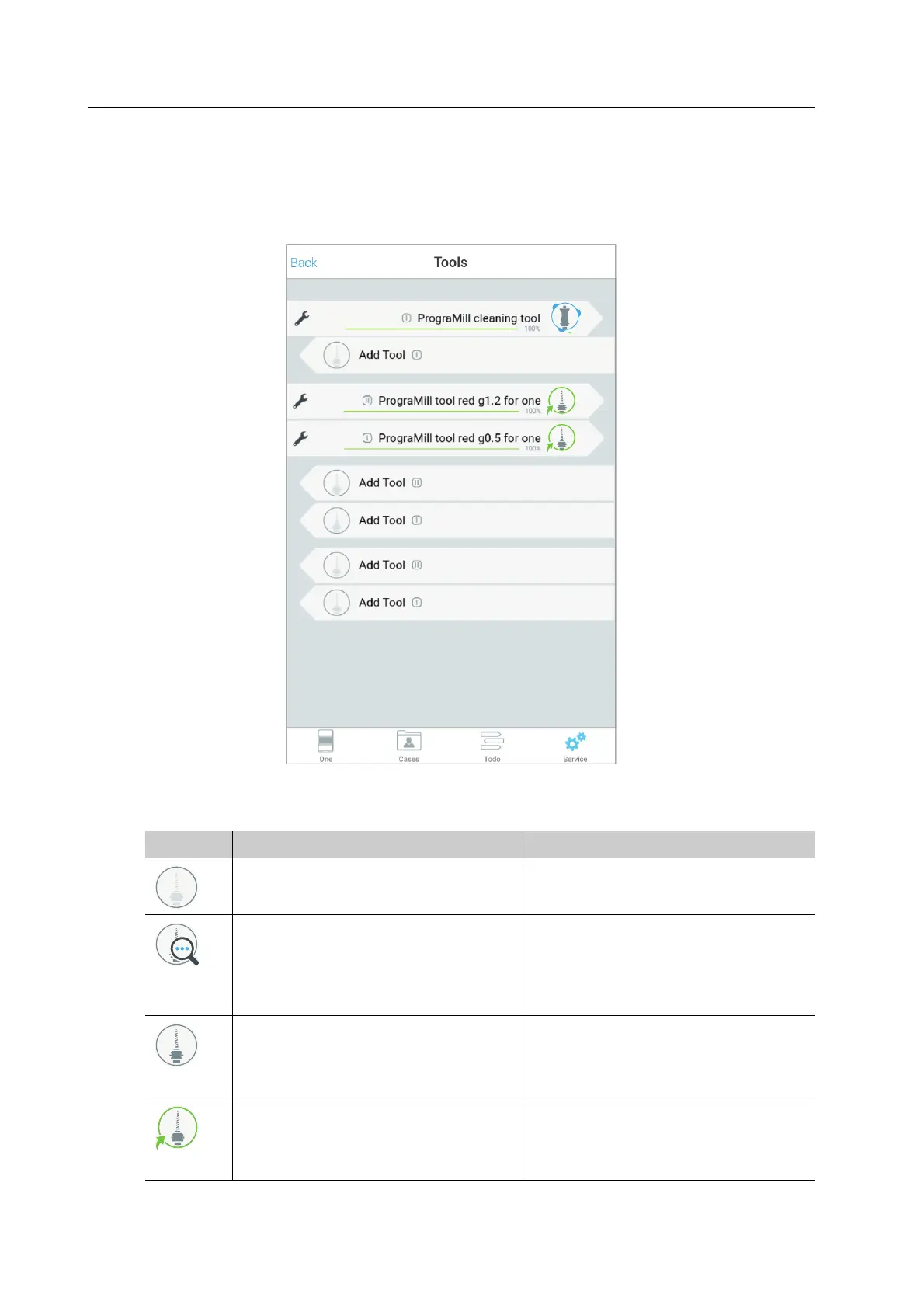 In the [Tools] section, you can see and change the status of the tools inserted in the material