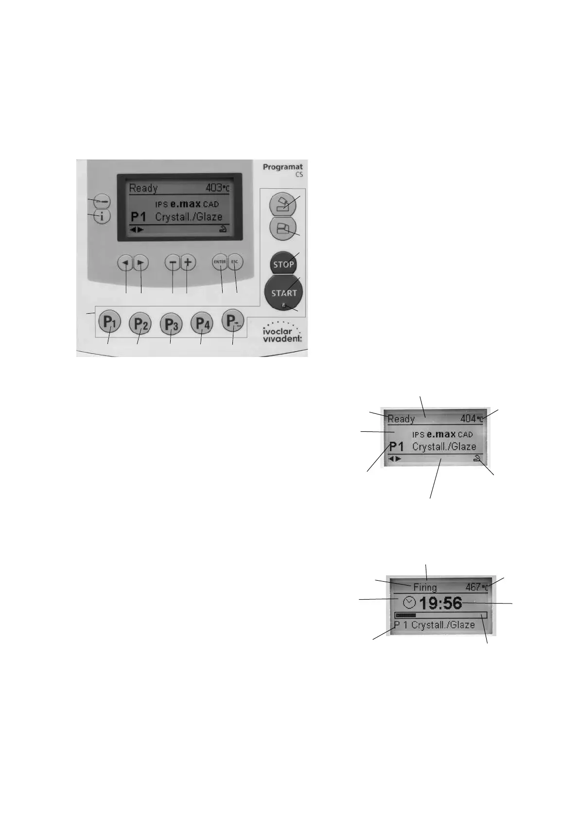 Used to select Program 1 (P1) (not possible during a program in