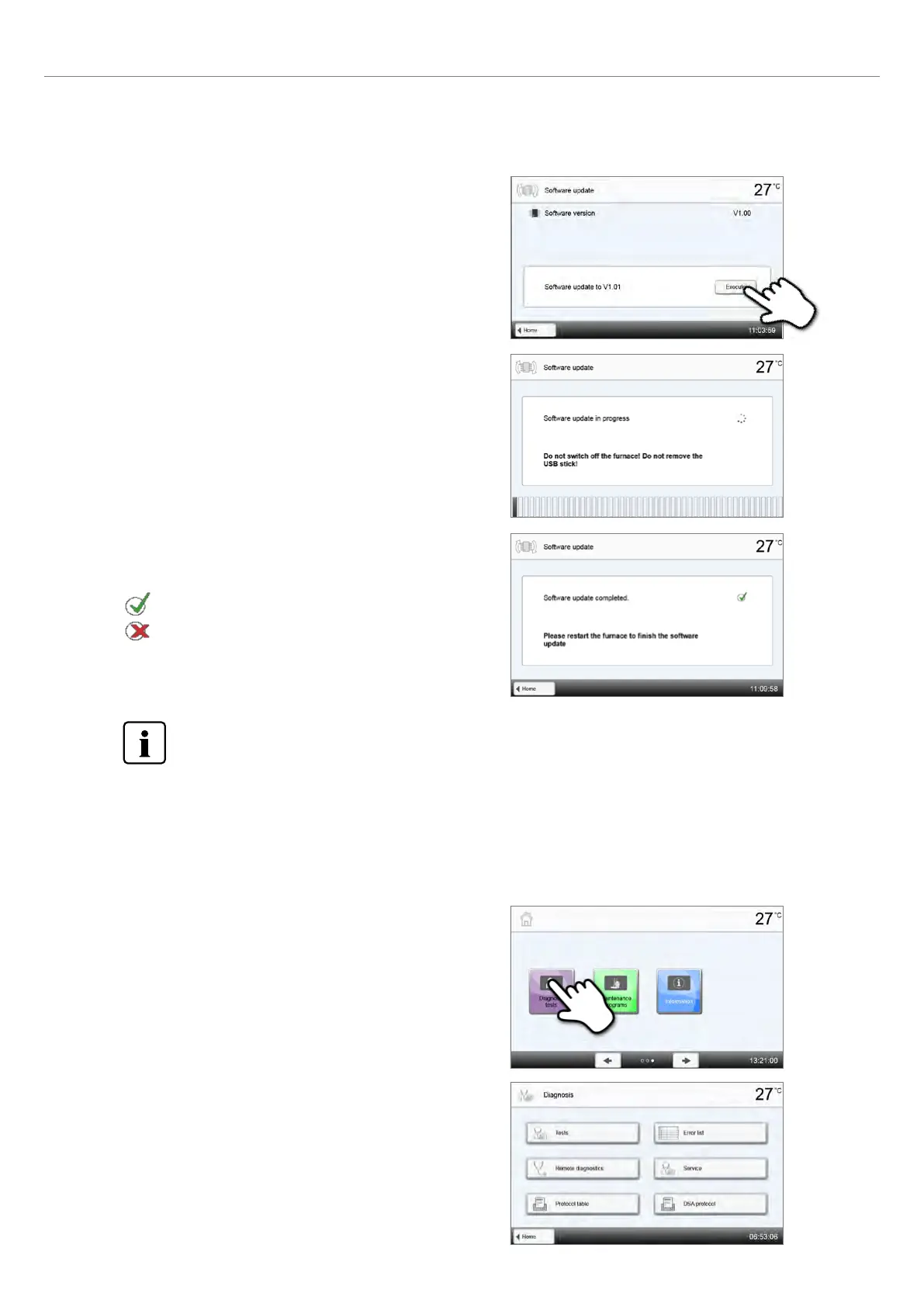 – Tests (e.g. vacuum test, heater test etc.)