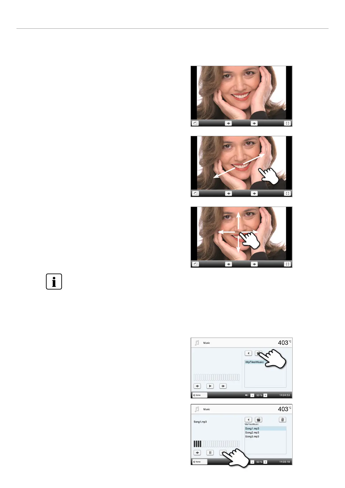 press the touch screen with the finger and move the image in the