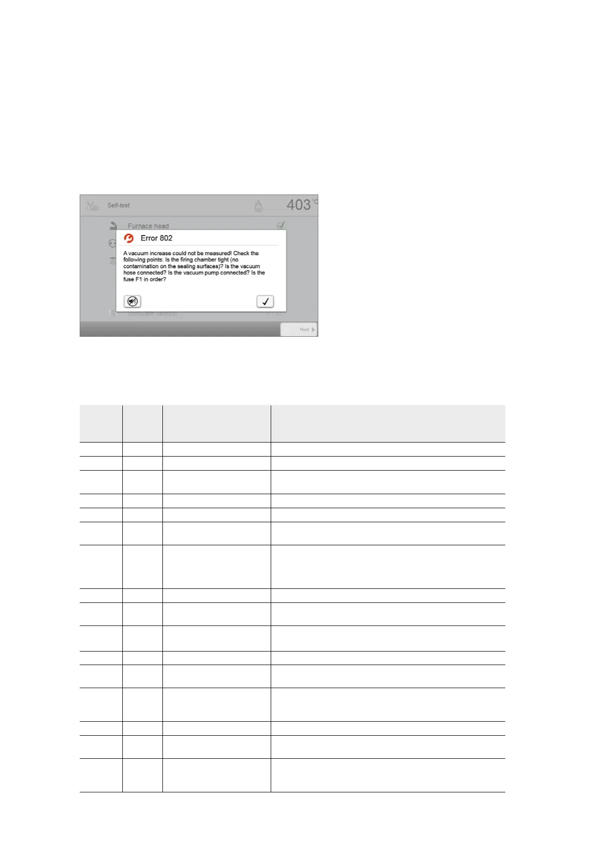 The following error messages may be displayed. If there are any questions, please contact the Ivoclar Vivadent After Sales