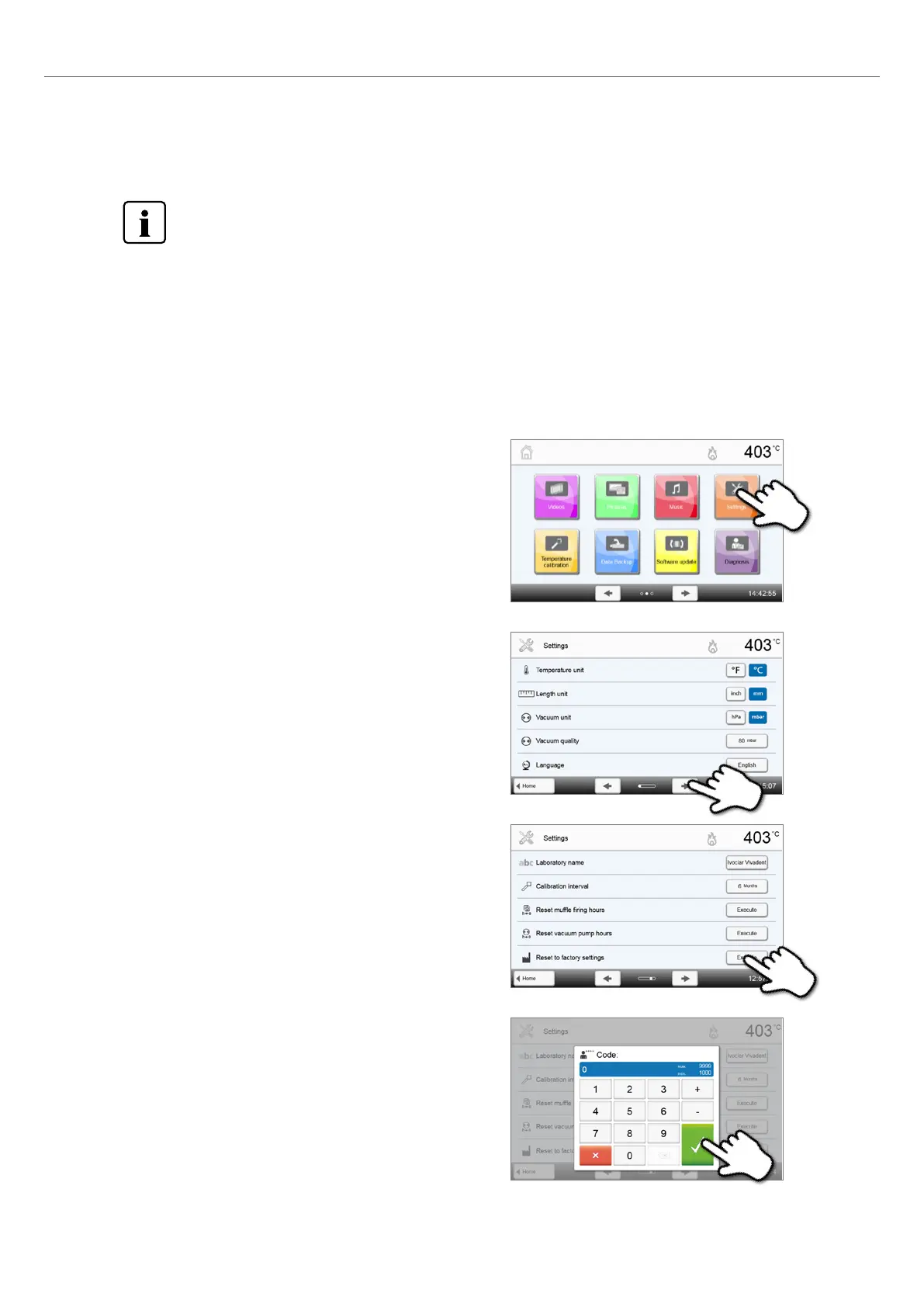 The furnace can be reset to the original settings, by resetting to factory settings. In this process, all programs, melodies and