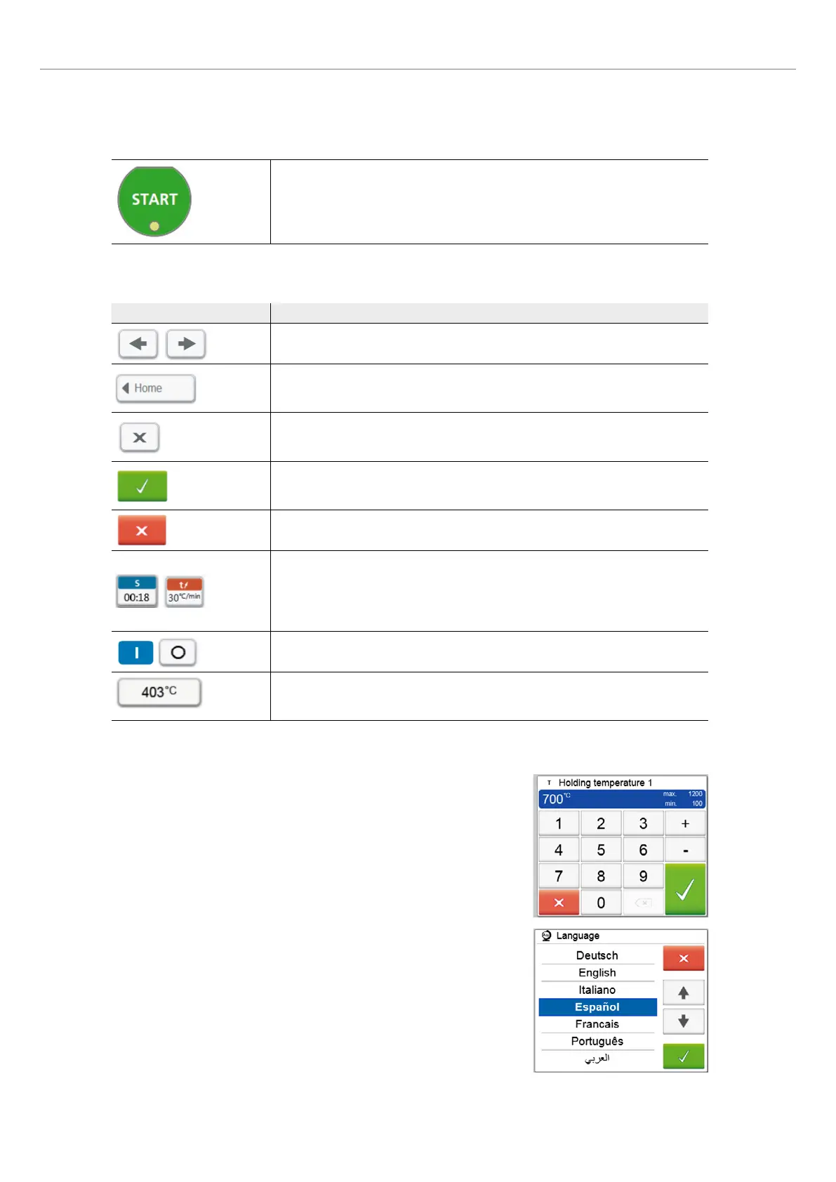 By pressing these buttons, a selection list or numeric pad for entering the values