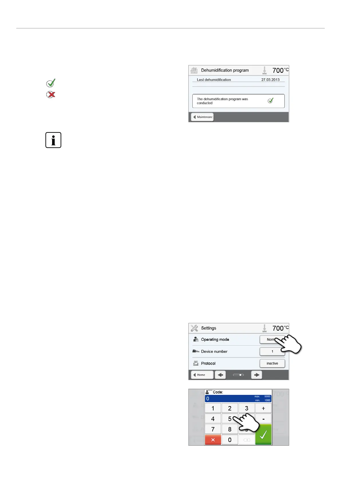 Various operating modes can be selected in the Settings menu. In this way, the user safety is enhanced and adjusted to the